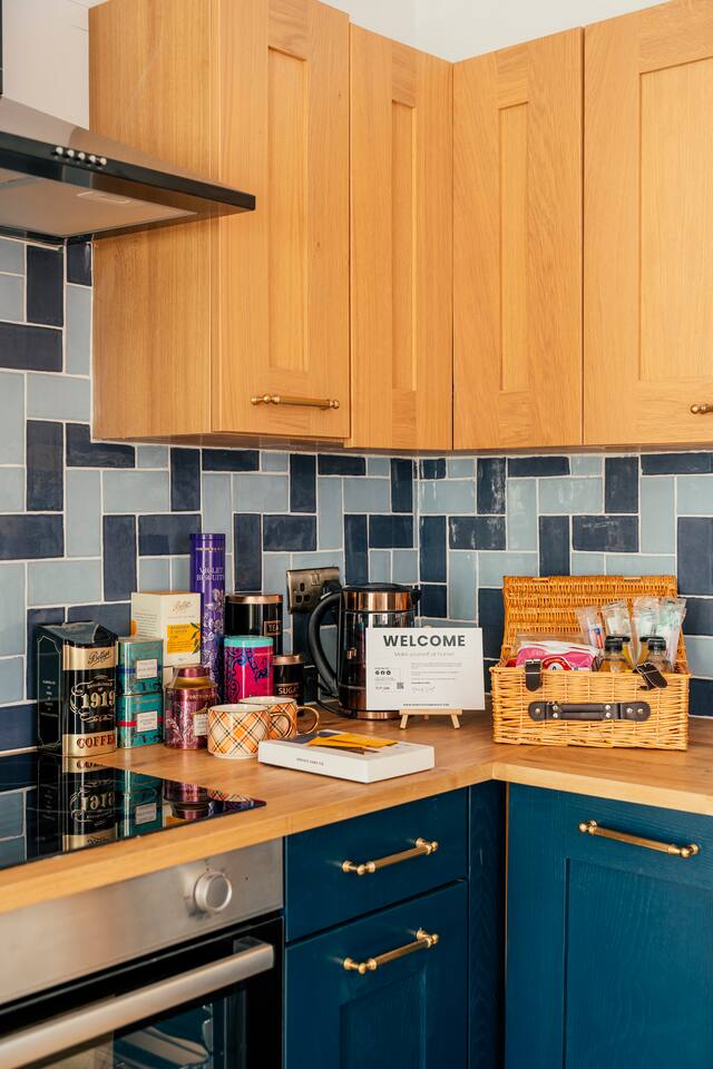 Beautiful 3BR 2Bath ground floor apartment with a large open plan kitchen/dining/living space and beautiful bedrooms equipped with high quality cotton linens and blackout curtains for a perfect night sleep. The space Previously an office, the property has a new lease of life as series of modern yet classical apartment with 3.5m high ceilings and two sash windows making it the perfect place to socialise. Other things to note I would be delighted to welcome you my property which was thoughtfully converted into three individual apartments each with high ceilings where we've created a modern yet traditional aesthetic which is perfect for socialising with friends or family. The apartments are decked in wood and velvet making for a comfortable yet calming break, the furniture is all velvet and the kitchen and flooring are both solid wood. The property is a 5 minute walk from both the central bus and train stations and also comes with a driveway to accommodate two tandem-parked cars. The space 🧳 The Living, Dining & Kitchen Area: The property boasts three fully equipped kitchens with microwave, air fryer, oven, toaster and plenty of cutlery and dinnerware. There are three open plan dining areas making it the perfect space to socialise in. 🛌 The Bedrooms: Each bedroom features a velvet bed, crisp cotton bed linens and towels and blackout curtains for your comfort. 🚿 The Bathrooms: Each of the four bathrooms boasts an individual yet bold design and also features a rainfall shower head and a hansgrohe toilet. Every bathroom is equipped with basic essentials including shampoos and body washes. Other Key Facts: 🚗 Free parking for 6 vehicles 📍 5 minute walk into Harrogate's Town Centre 💼 Within walking distance to the Conference Centre 🏡 Located next to 9-5 offices